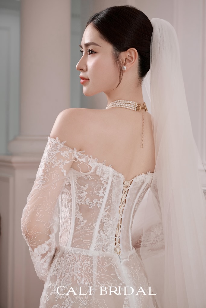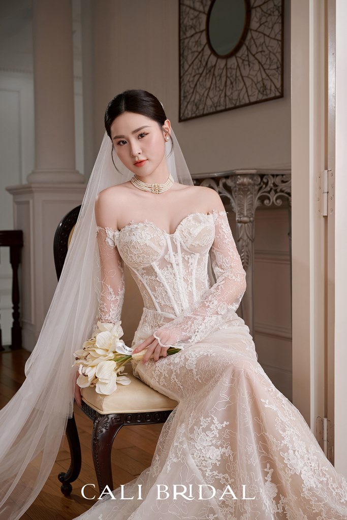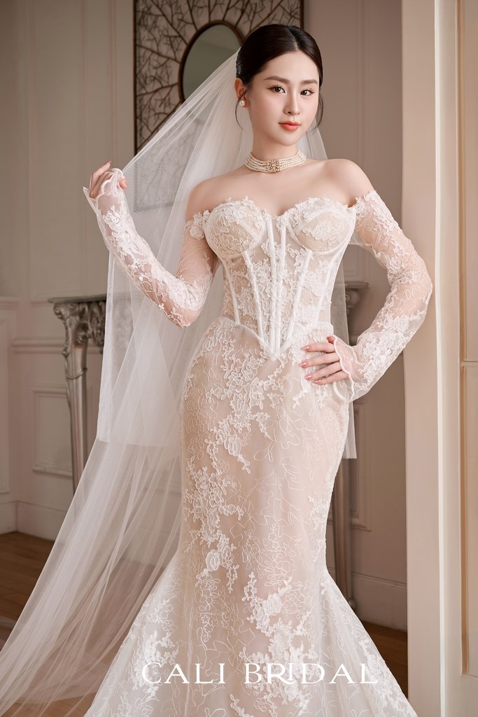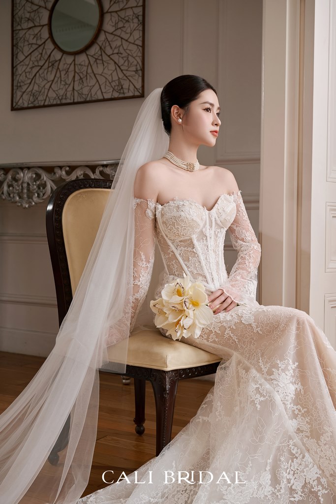 Váy ren đuôi cá đẹp cổ điển và quyến rũ. Từng chi thiết thuê ren tinh xảo mang đến sự sang trọng và thanh lịch cho cô dâu.
